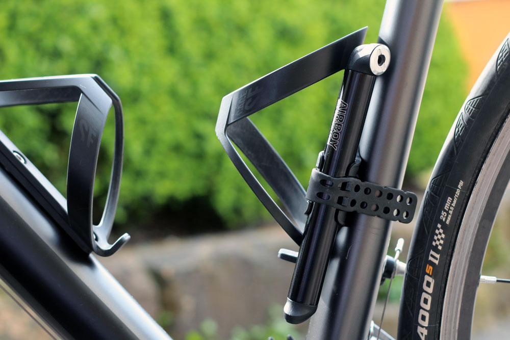 Für Touren eignen sich Mini- bzw. Rahmenpumpen. Man hat die Pumpe am Rahmen immer dabei und bei Bedarf griffbereit. Darüber hinaus haben Minipumpen meist auch ein sehr kleines Gewicht. Die Airboy-Minipumpe von SKS wiegt gerade mal 62 Gramm.