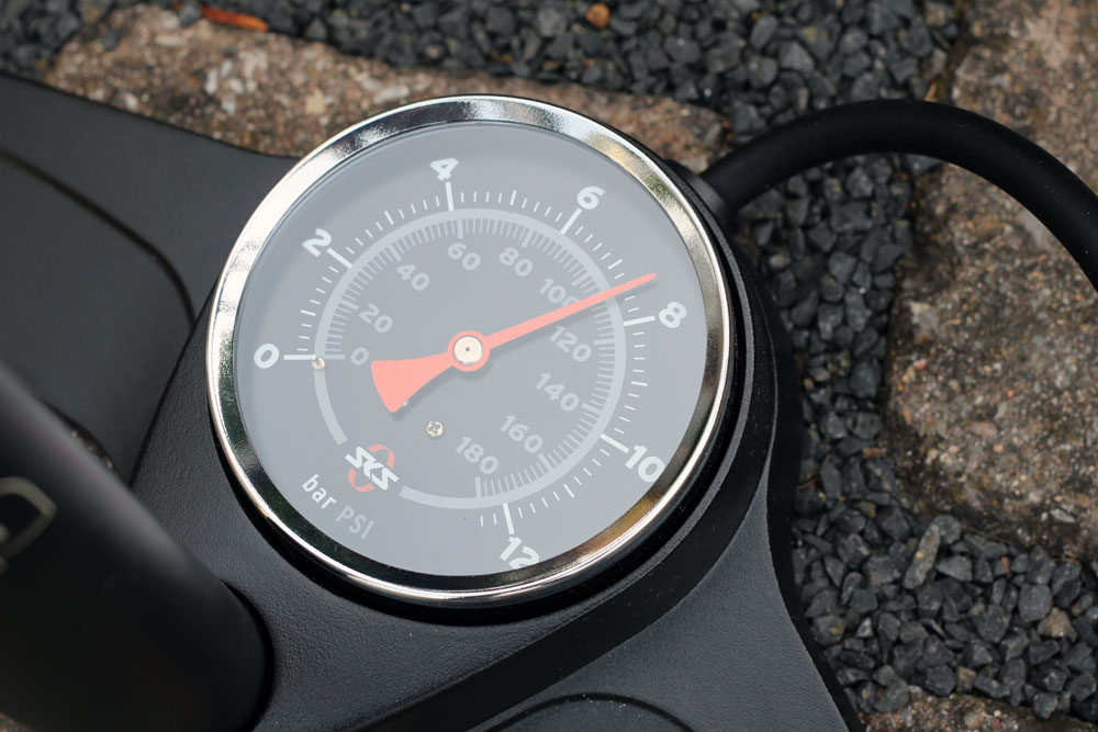 Das lange Aluminium-Trapezrohr sorgt für einen leichten Druckaufbau (12 bar) im Reifen. Der SKS MultiValve-Kopf passt problemlos auf alle Ventilarten.