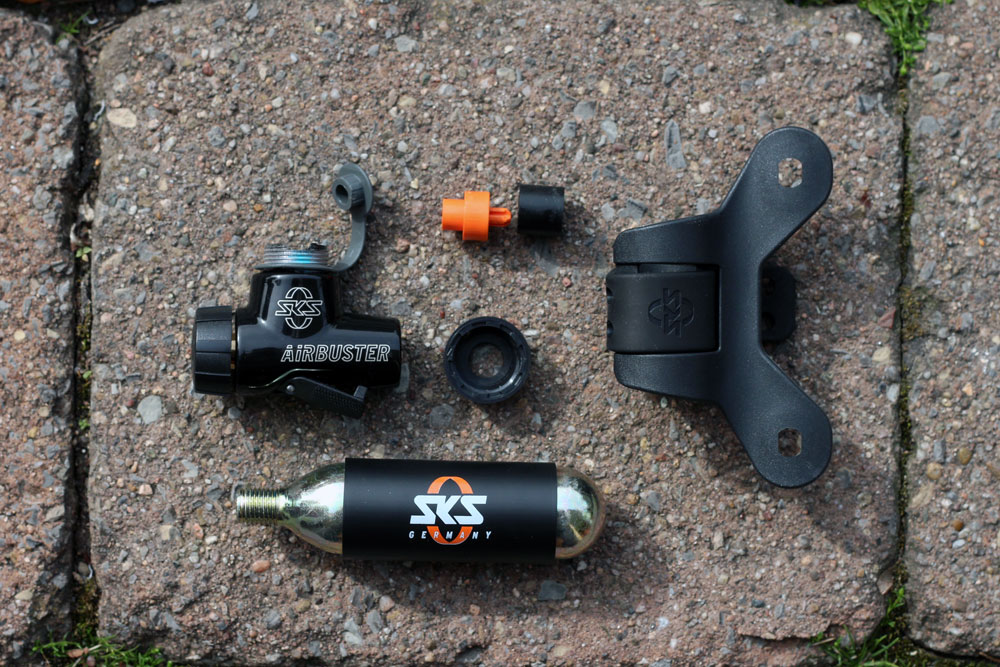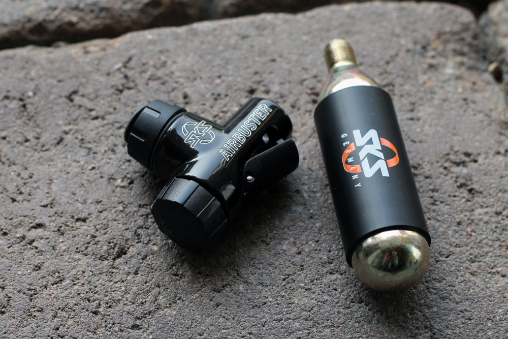 Der neue AIRBUSTER ist die extrem leichte Lösung für jeden Wettkampf. Die CO2-Pumpe besteht aus einem Aluminium-Gehäuse mit integriertem Druckdosierventil, Kälteschutz und Staubschutzkappe. Sie eignet sich sowohl für 16g als auch für 24g Kartuschen mit Gewinde. Über einen Drehdosierer kann der Druck leicht reguliert werden. Zum Lieferumfang gehören eine 16g-Ersatzkartusche und der bewährte SKS-2-Punkt-Pumpenhalter.