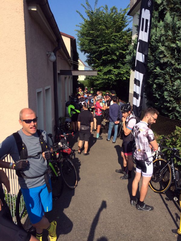 Um 8.30 Uhr begann die Einschreibung und Ausgabe der Verpflegung. Wir hatten auch die Möglichkeit eine Badehose und ein Handtuch abzugeben, die dann zum Verpflegungsstop am Bodensee transportiert wurden. Somit konnte jeder der wollte später in den Bodensee springen.