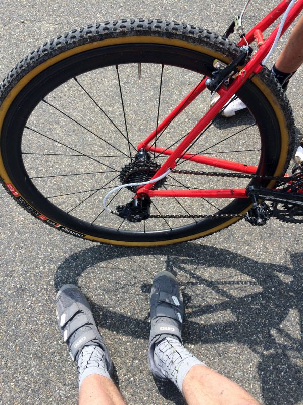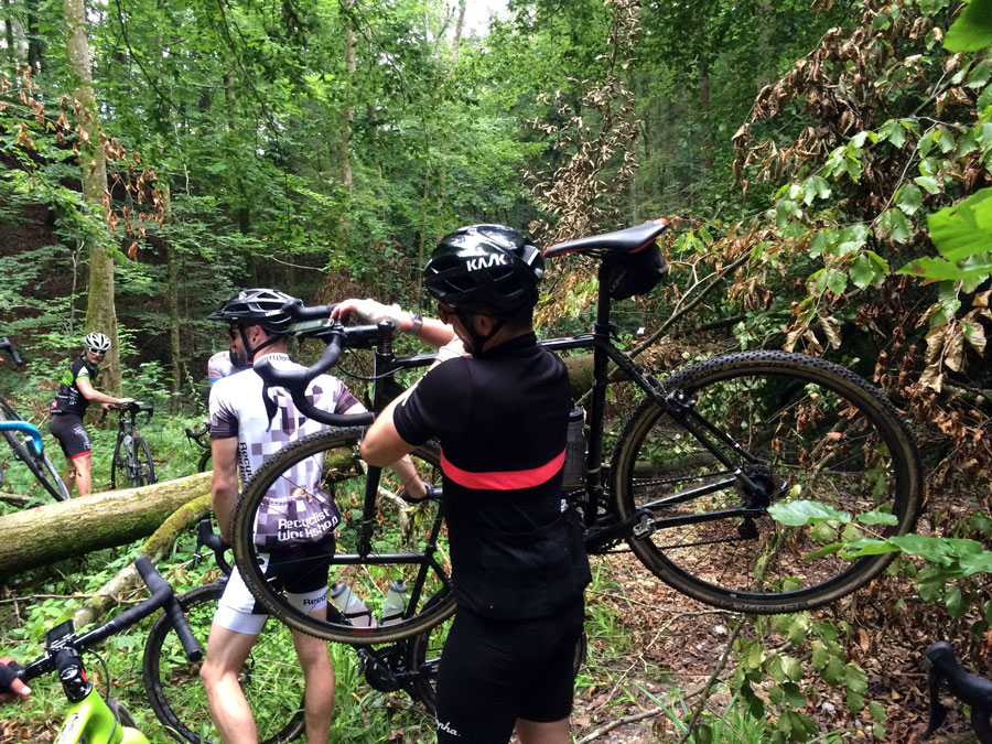 Bei den Rädern war alles dabei. Wir hatten ein Crossrad mit 37mm Schwalbe Smart Sams dabei. Es waren aber auch ein Singlespeed-CX, ein MTB und die Jungs von Good Times Roll mit ihren Ritte Snobs und 28mm Roadtires am Start. Das wurde dann allerdings später auch mit einem (mehreren?) Platten „bestraft“.